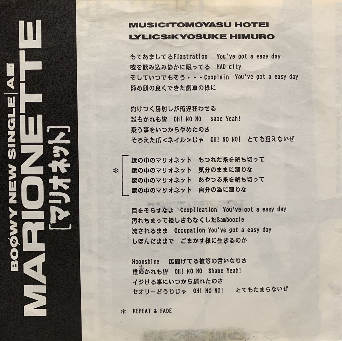 Ep 7インチレコード 激レア 非売品 見本盤 プロモオンリー Boowy Marionette マリオネット 氷室京介 布袋寅泰 Cd移行期 の落札情報詳細 ヤフオク落札価格情報 オークフリー スマートフォン版